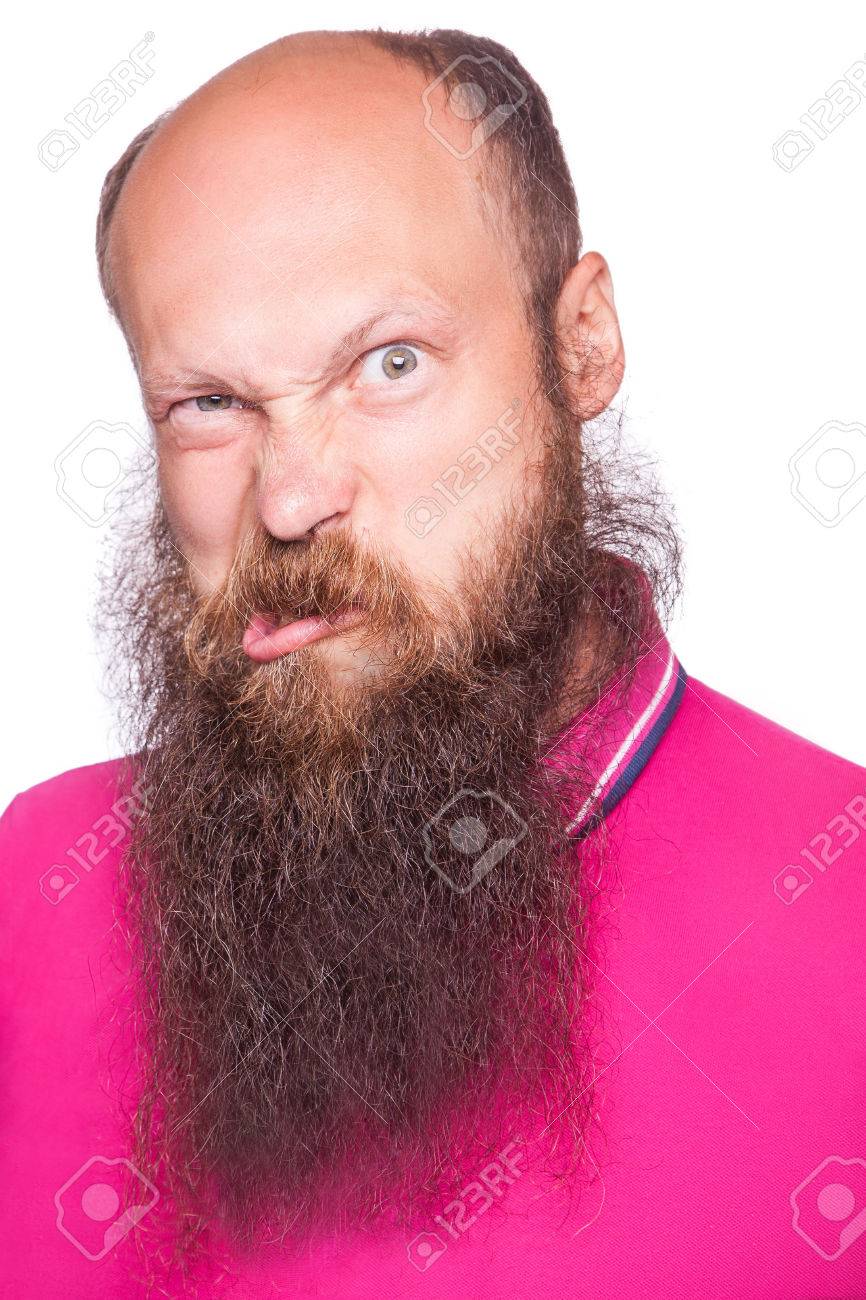 Scarica Gratis Portrait D Un Homme Barbu Chauve Drole Sur Un Fond Blanc Isole